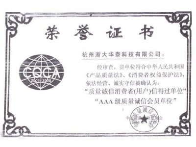 重質(zhì)量守誠(chéng)信榮譽(yù)證書